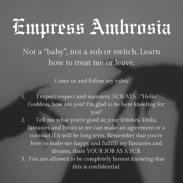 Empress Ambrosia replied: Quiet but obedient, did pre-payment