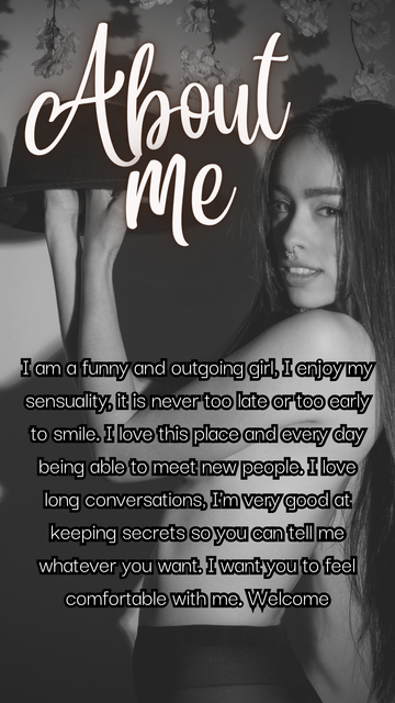 Soy una chica dulce y sociable que disfruta de las experiencias, nuevas aventuras y desafíos cada día. Me encanta practicar yoga y puedo decirte que soy muy flexible.