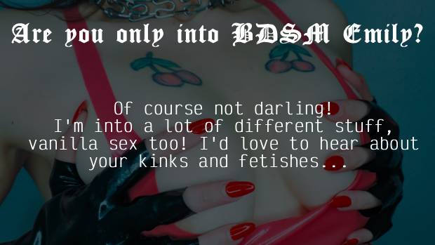Você pode PEDIR UM ENCONTRO com Emily Doomed quando for conveniente para você. Tudo está no seu fuso horário, suas horas locais. Ela receberá seu pedido e o aceitará se sua agenda estiver livre. Você receberá uma confirmação por e-mail e poderá se preparar para sua experiência quente.